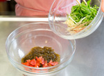 長命草うどんと相性の良い、ショウガ、ミョウガ、ネギといった薬味を利かせ、
